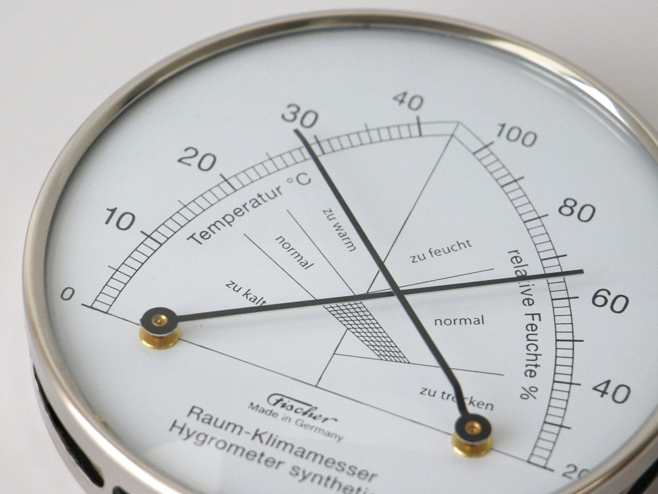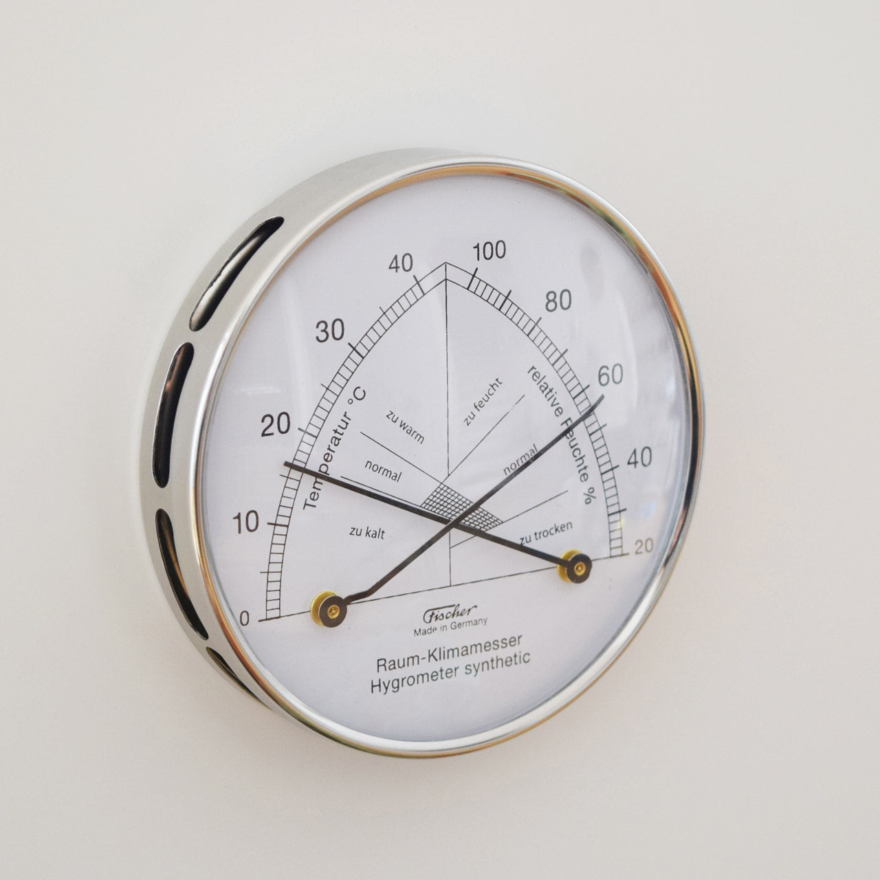 ドイツのFischer-barometer(フィッシャーバロメーター社)によるシンプル、スタイリッシュな温湿度計です。