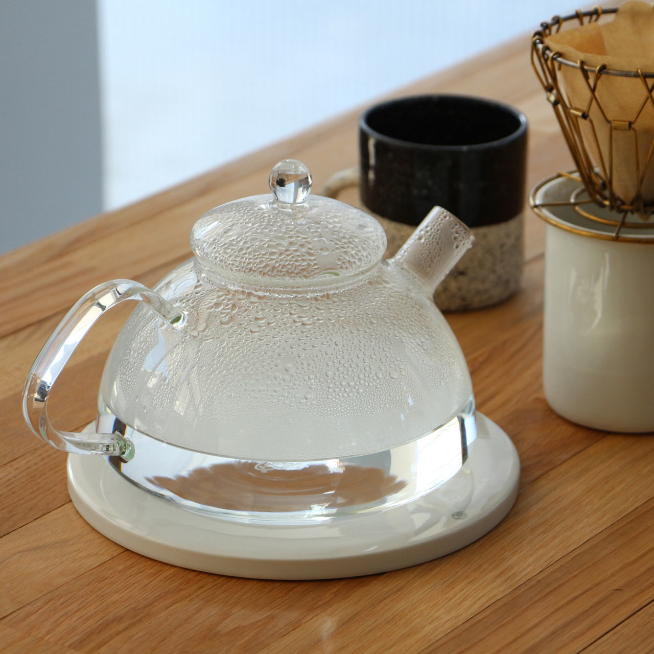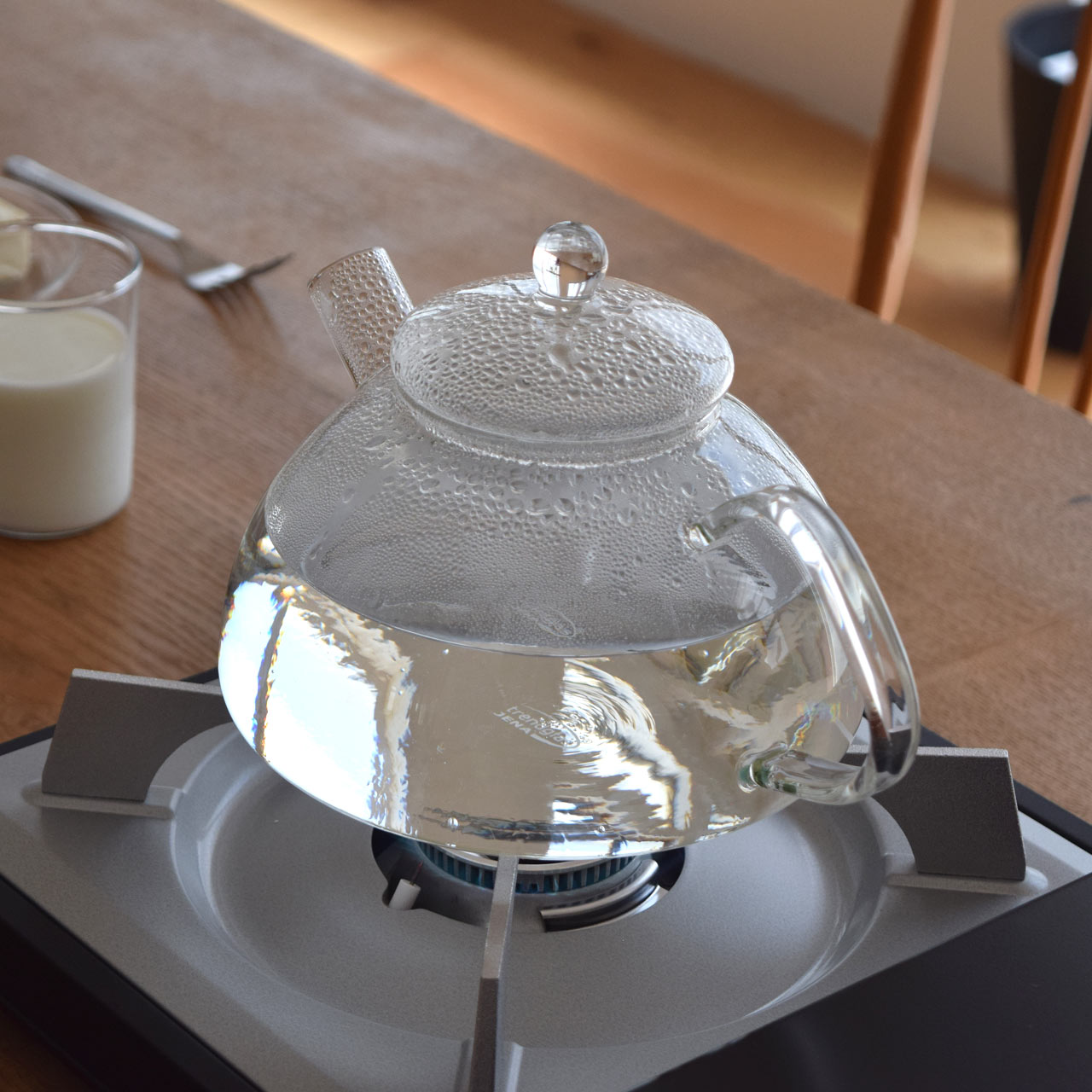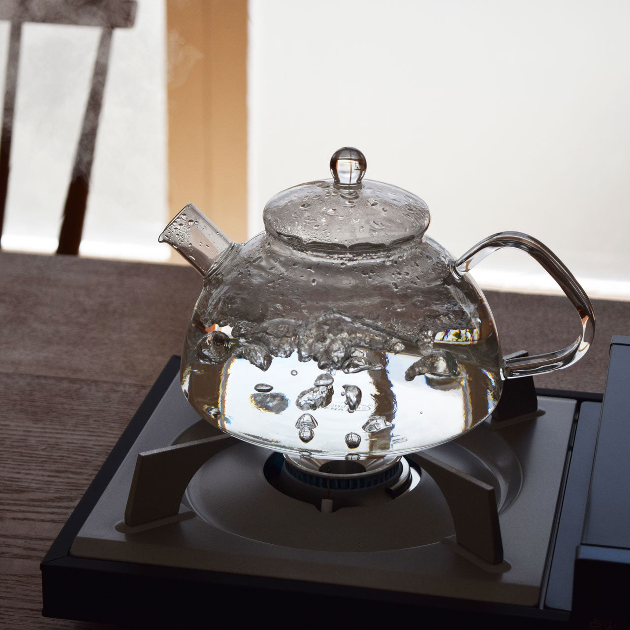 沸騰していく過程が見られるのは透明ガラス製ならでは。蓋(フタ)まで透明なので空間に溶け込みやすく、インテリアにこだわる方にもおすすめです。